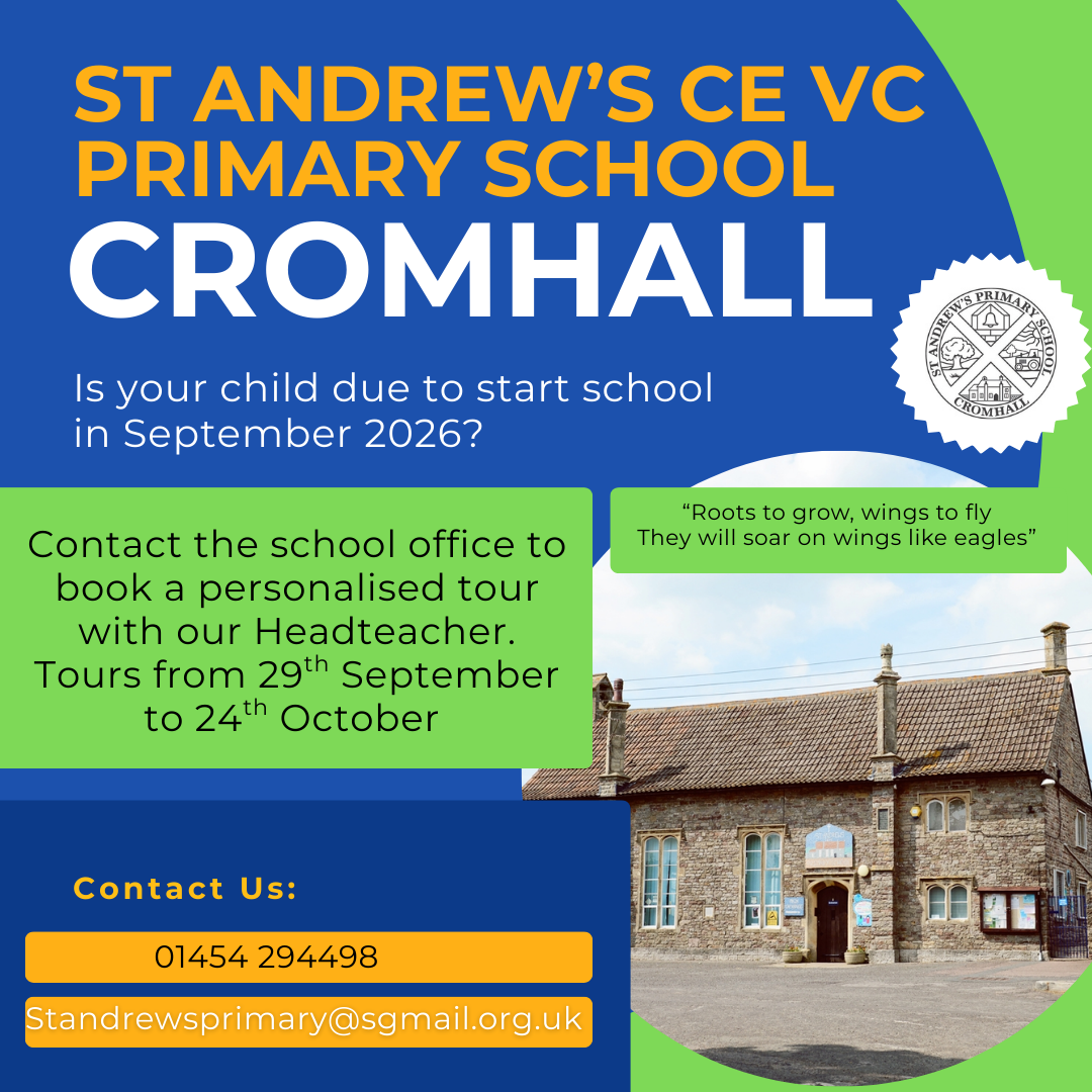 Please contact the school on 01454 294498 or standrewsprimary@sgmail.org.uk if you would like to book a 1:1 tour with our Headteacher.